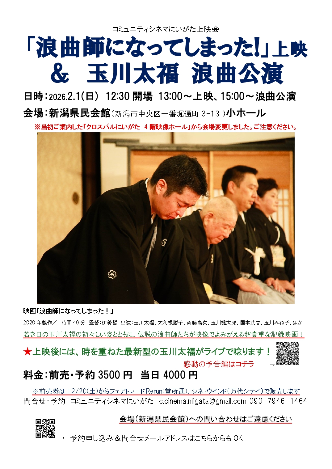 「浪曲師になってしまった」上映会&玉川太福浪曲公演
