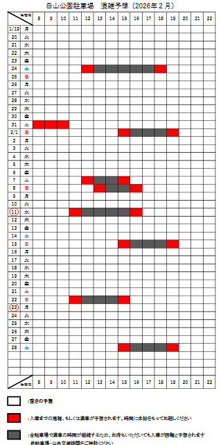 2026/2/11(水祝)は、白山公園駐車場の【満車】が予想されます